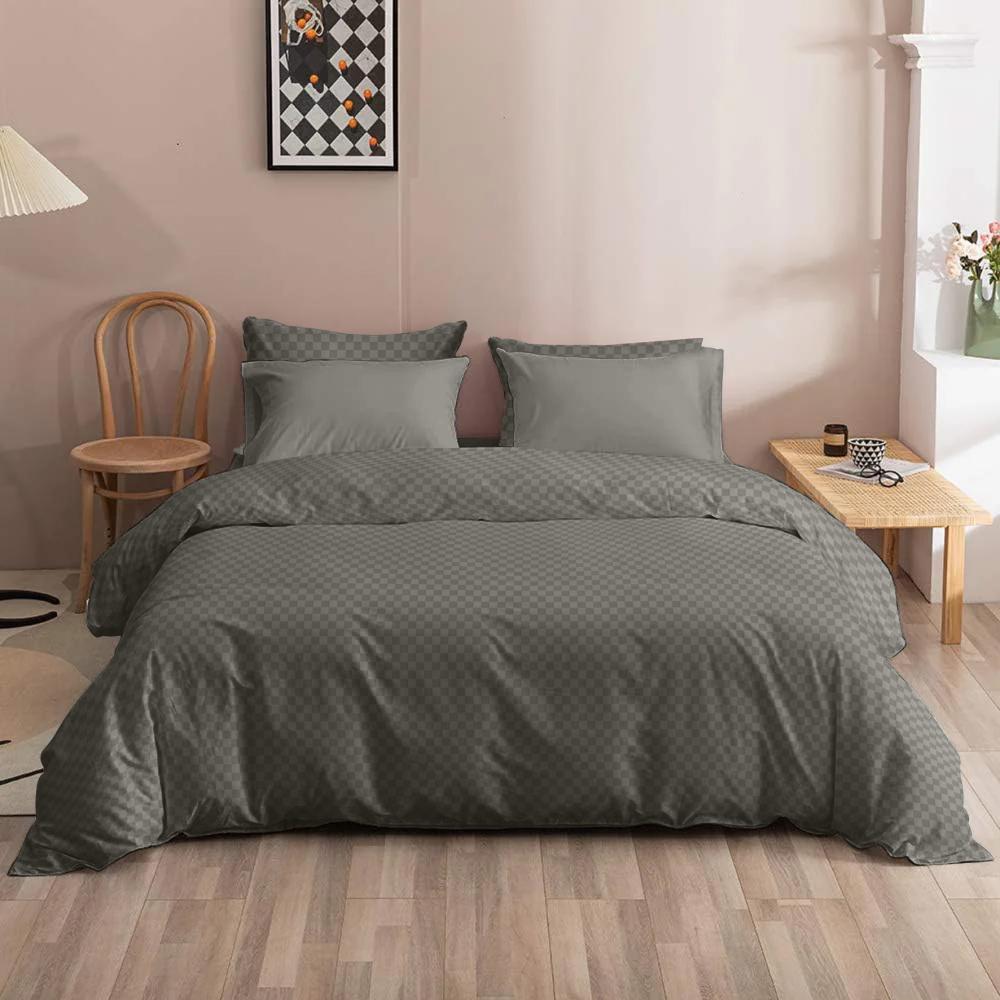 ✔️ لحاف رمادي نفرين بتصميم راقٍ يضفي لمسة فخامة على ديكور الغرفة.
