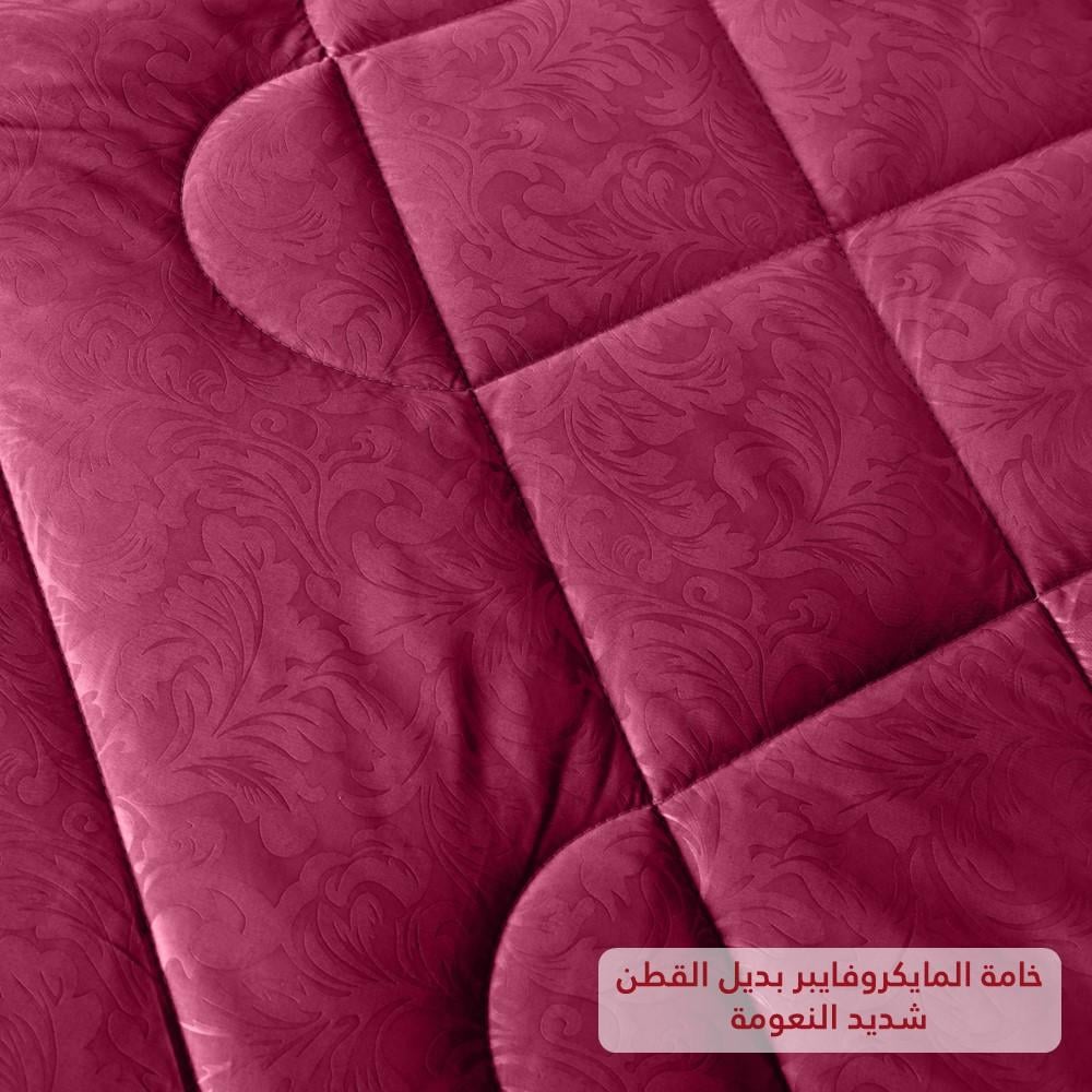 يأتي بتصميم متألق في عالم المفارش الصيفية والنمط المشجر على جميع المفرش مع وجه اخر سادة لإعطاء خيارات اكثر للإطلالة, مكون من خامة ذات جودة عالية من نسيج المايكروفايبر بديل القطن شديد النعومة مع حشوة من أرقى ألياف البوليستر الطري بسمك مميز من أجل نوم مريح.