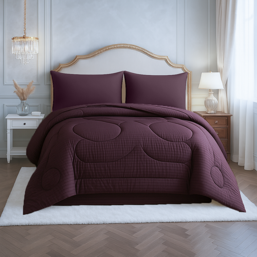 يتميز المفرش بتصميم كلاسيكي ، ملمس ناعم و جودة عالية… وكل هذا في لون خمري أنيق يضيف على غرفتك دفء وجاذبية.
