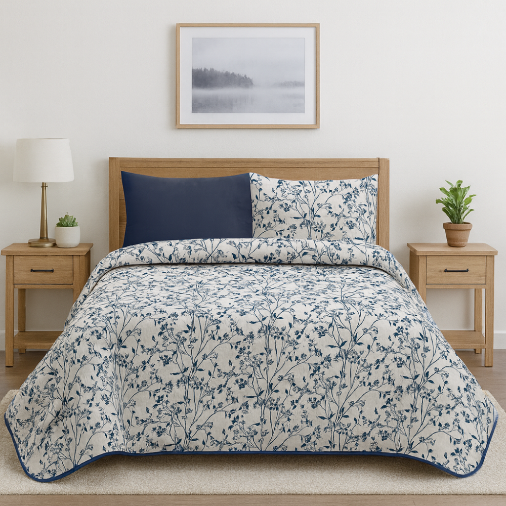 أضيفي لمسة من الأناقة إلى غرفتك مع طقم مفرش فلورا روز المشجر من TERRY. مصنوع من مايكروفايبر فاخر فائق النعومة، بتصميم مشجر عصري يمنحك راحة مثالية وإطلالة أنيقة.