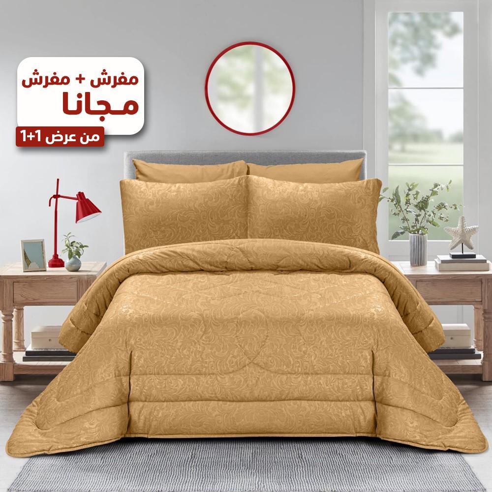 أضفي لمسة من الأناقة والرقي إلى غرفتك مع طقم لحاف سرير جملى روز فلوري. يتميز بتصميم مشجّر خفيف وجذاب مع وجه سادة لمزيد من التنوع . المفرش مصنوع من خامات فاخرة توفر لكِ نعومة فائقة وراحة لا مثيل لها.